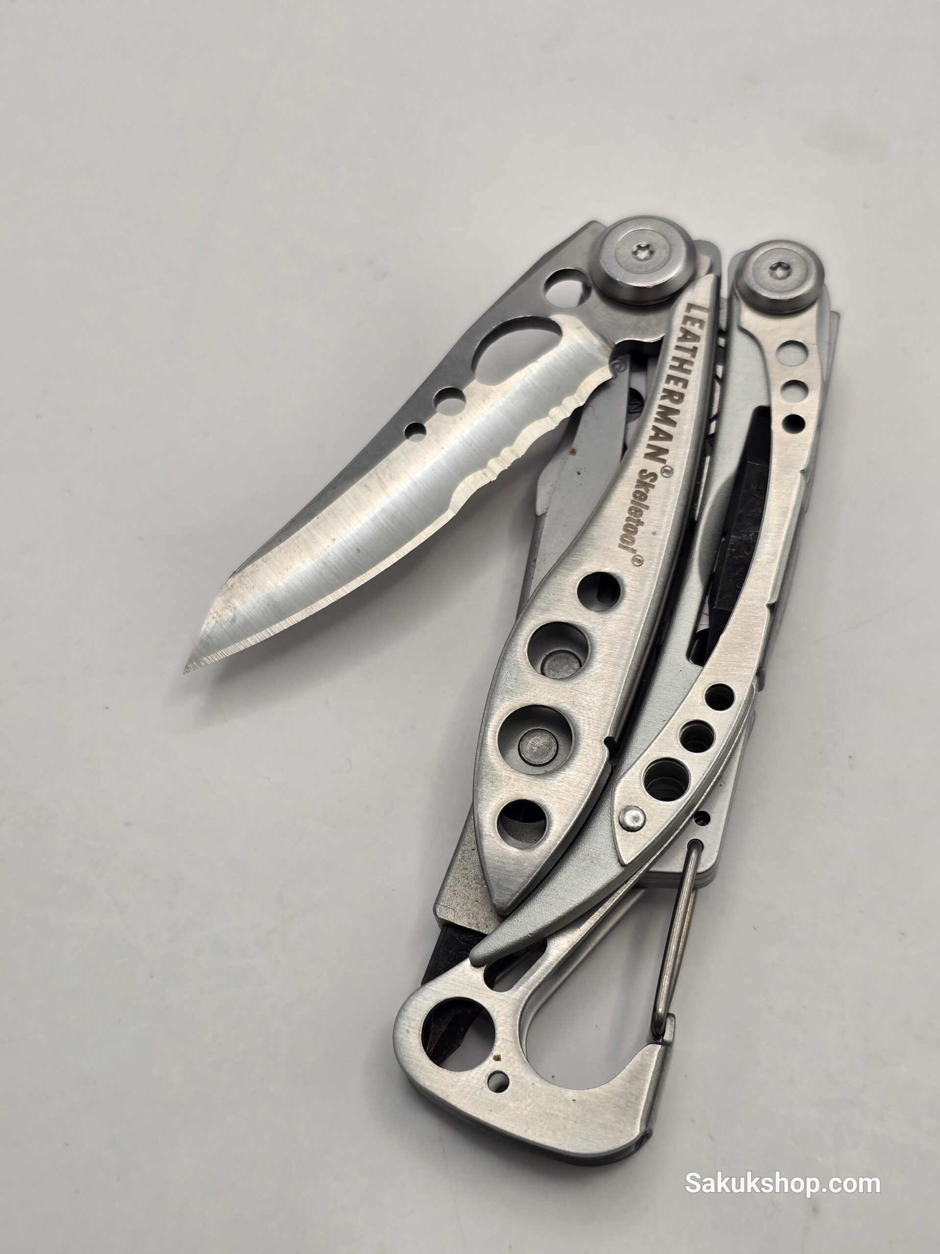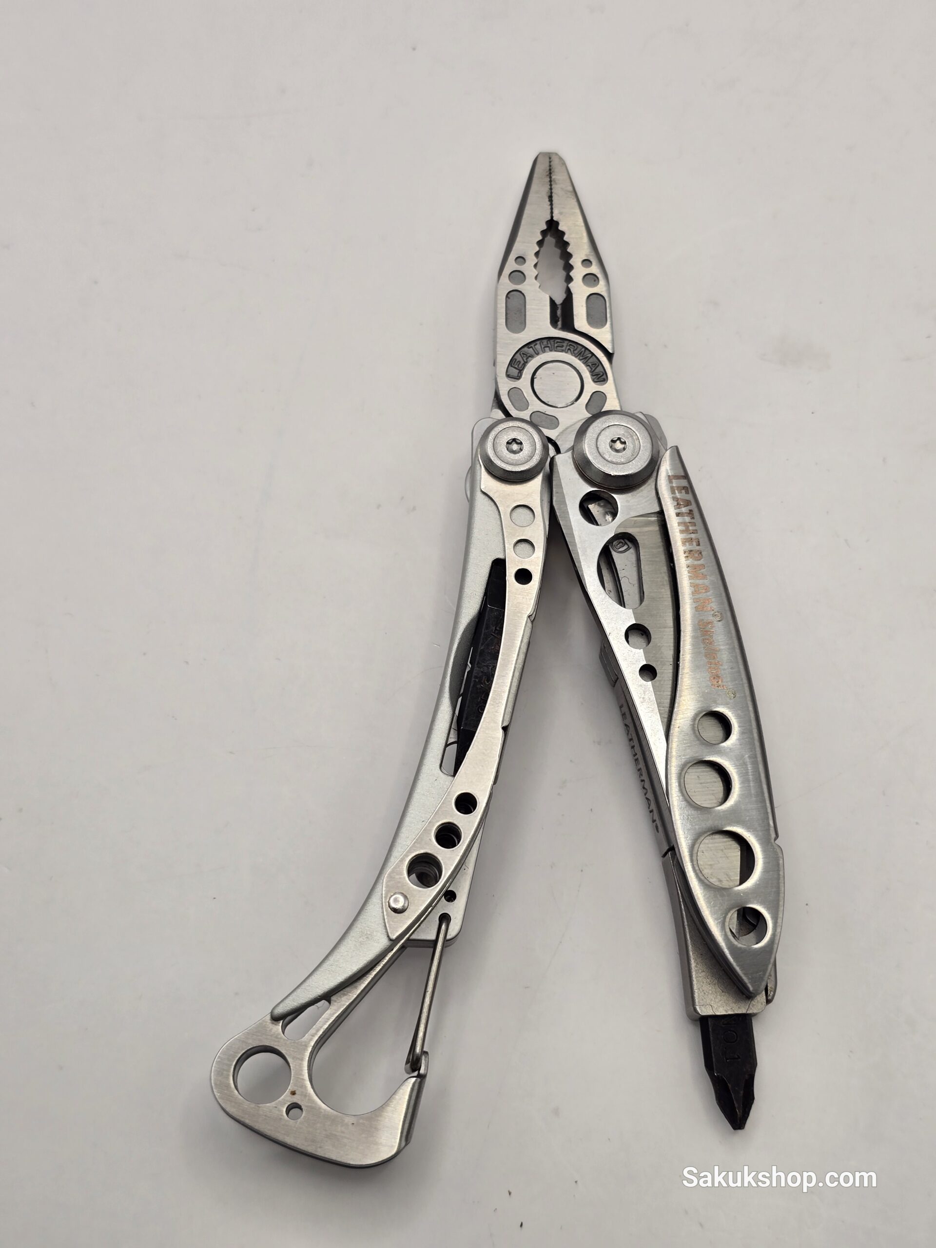 The Leatherman Skeletool is a lightweight (5 oz), ultra-compact multi-tool designed for everyday carry, featuring essential tools like pliers, a bit driver, and a combo knife in a minimalist, skeletonized frame. It includes a removable pocket clip and carabiner/bottle opener for easy accessibility.