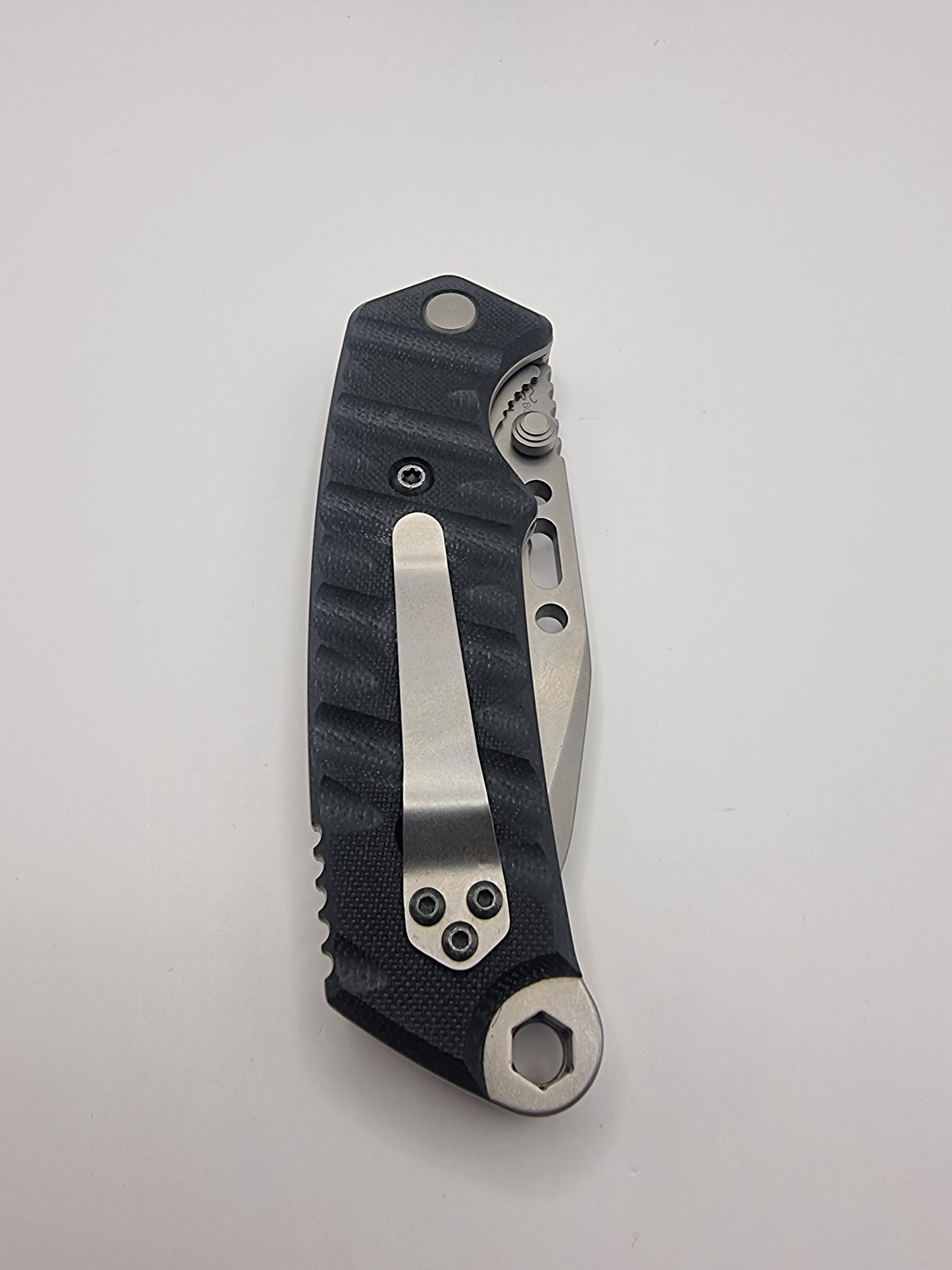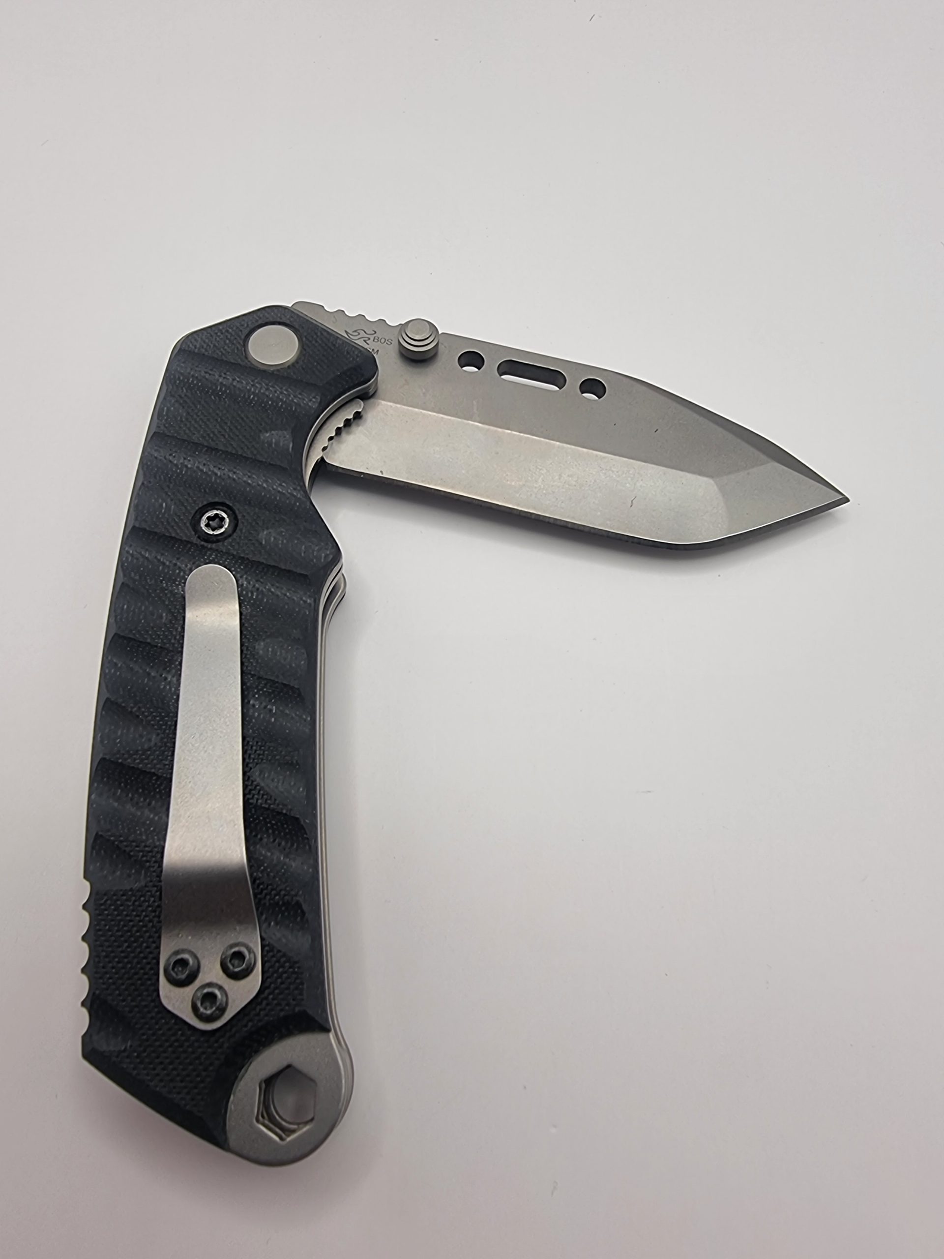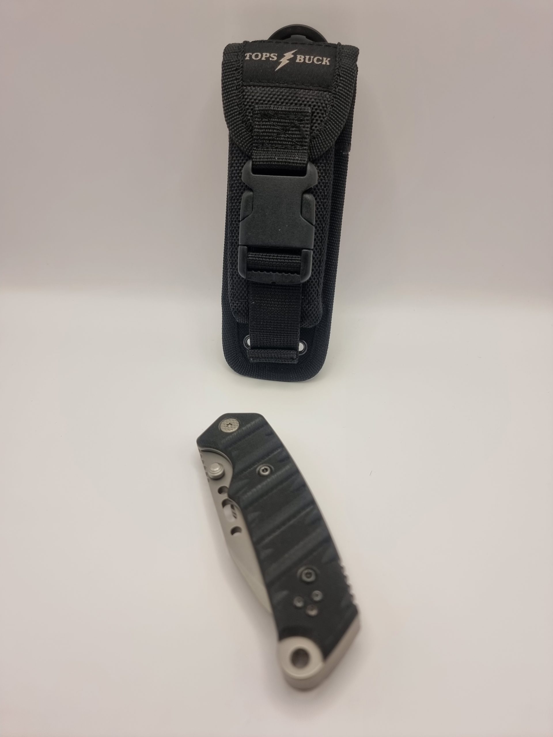 This Buck CSAR-T TOPS 095 is a heavy-duty pocket knife, focused on use by military professionals. The blade shape is “modified tanto”, according to Buck. This means that the traditional angle of a tanto-blade is a little curved. It is extremely sturdy with a width of 4.4 mm and weight of 247 grams. The ring on the end of the handle can be used as a bit-driver. You can use the standard bits that also fit in your drilling machine. The included nylon sheath is MOLLE-compatible, but can also be worn on a belt.