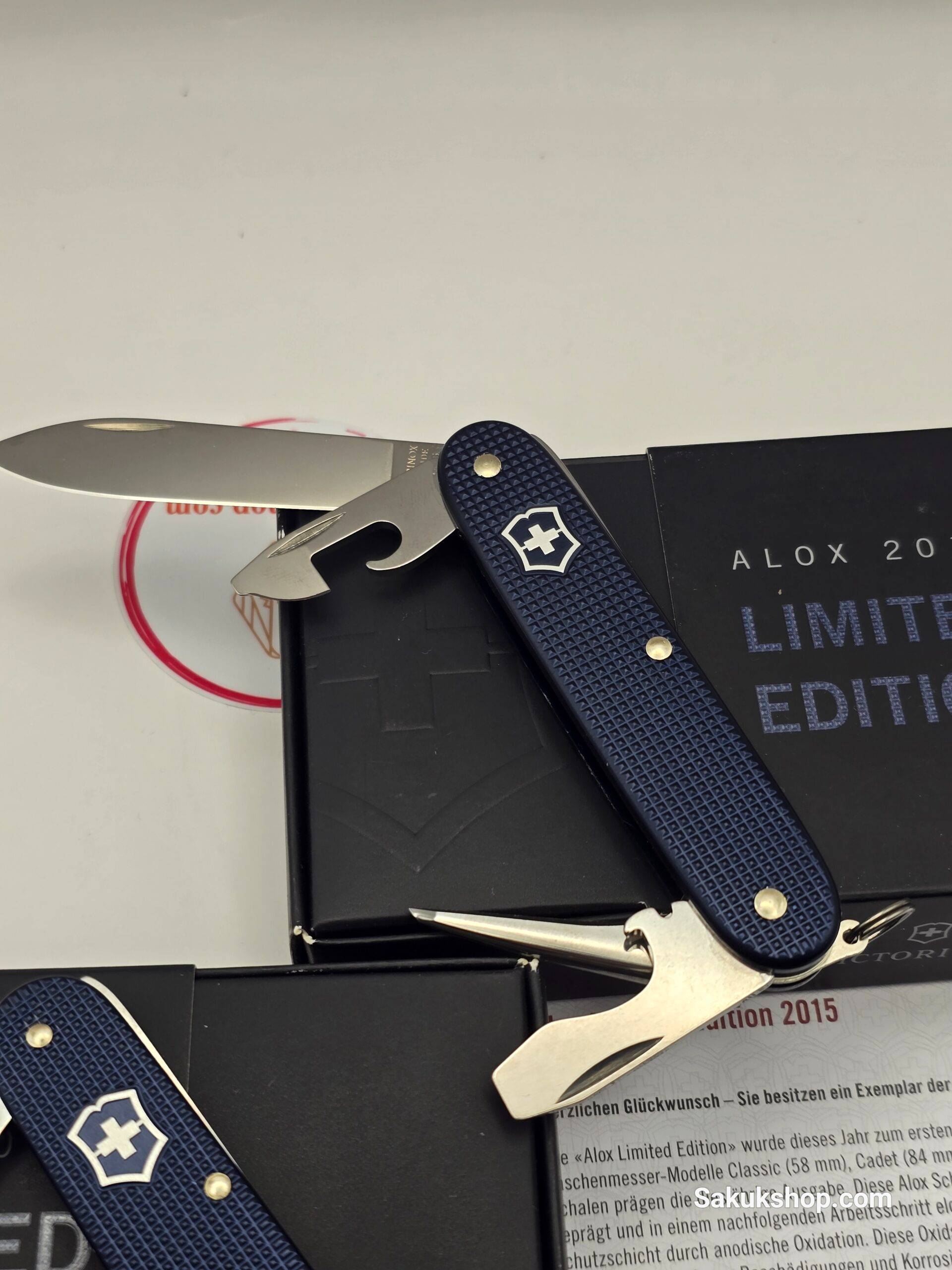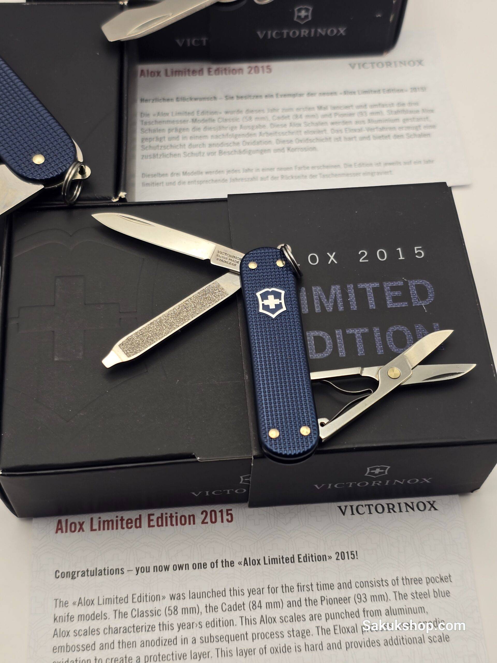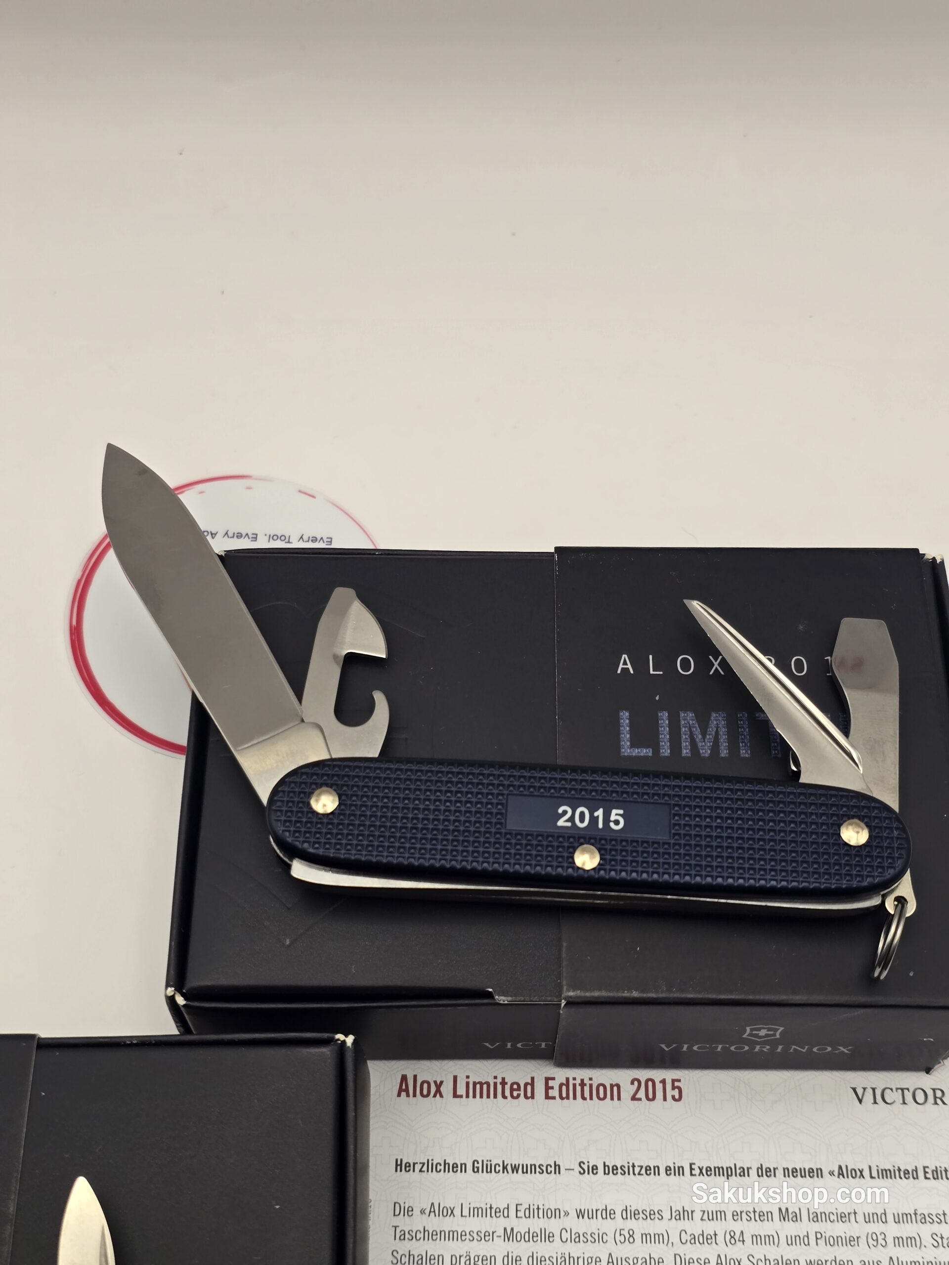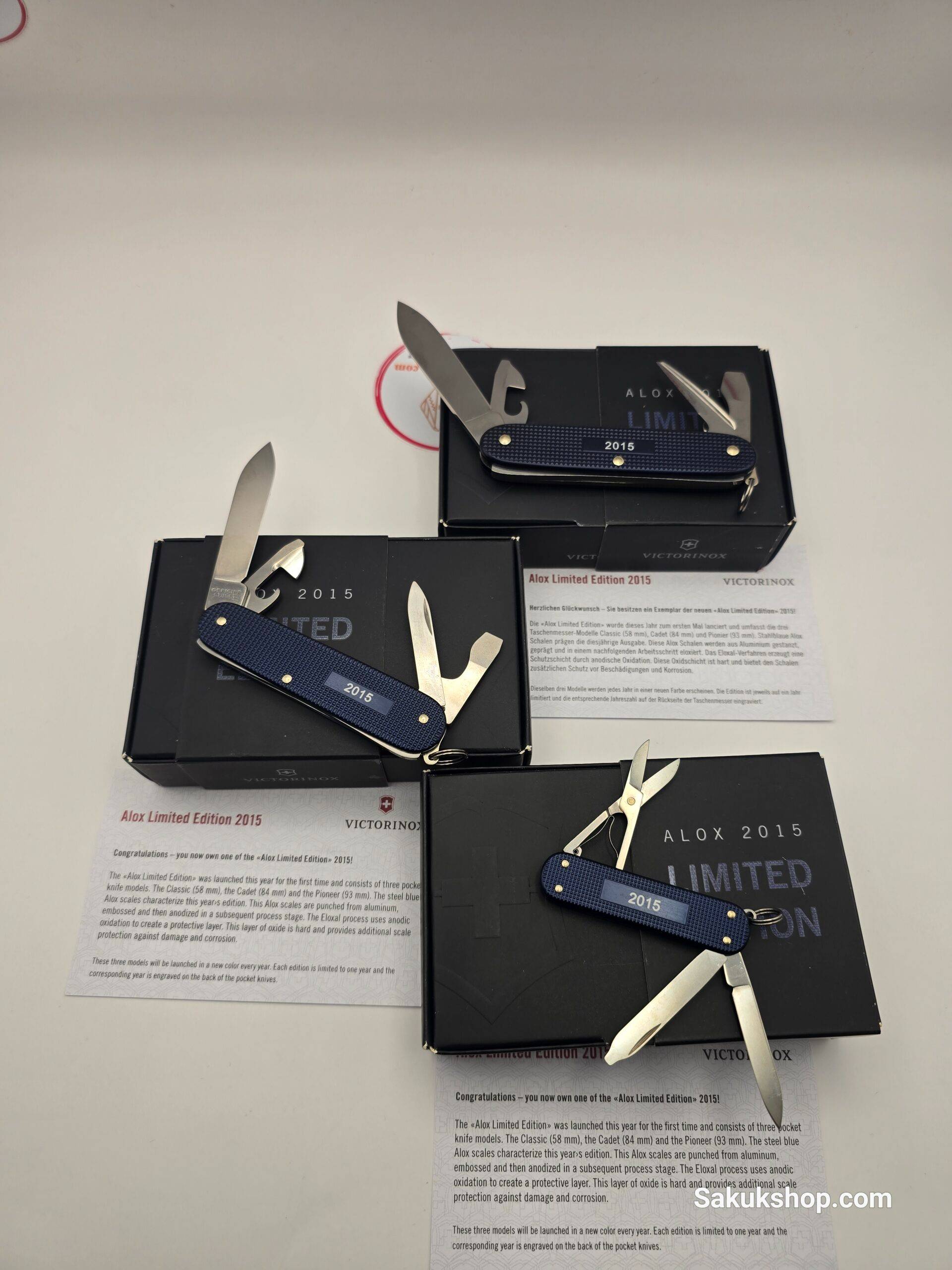 The Victorinox Alox Limited Edition 2015 was the first of Victorinox’s annual Alox releases, featuring three classic models (Classic SD, Cadet, Pioneer) in a distinctive steel blue color with engraved “2015” and “Victorinox since 1884” on the back of their rugged, anodized aluminum (Alox) scales, marking the start of a yearly tradition for collectors.
