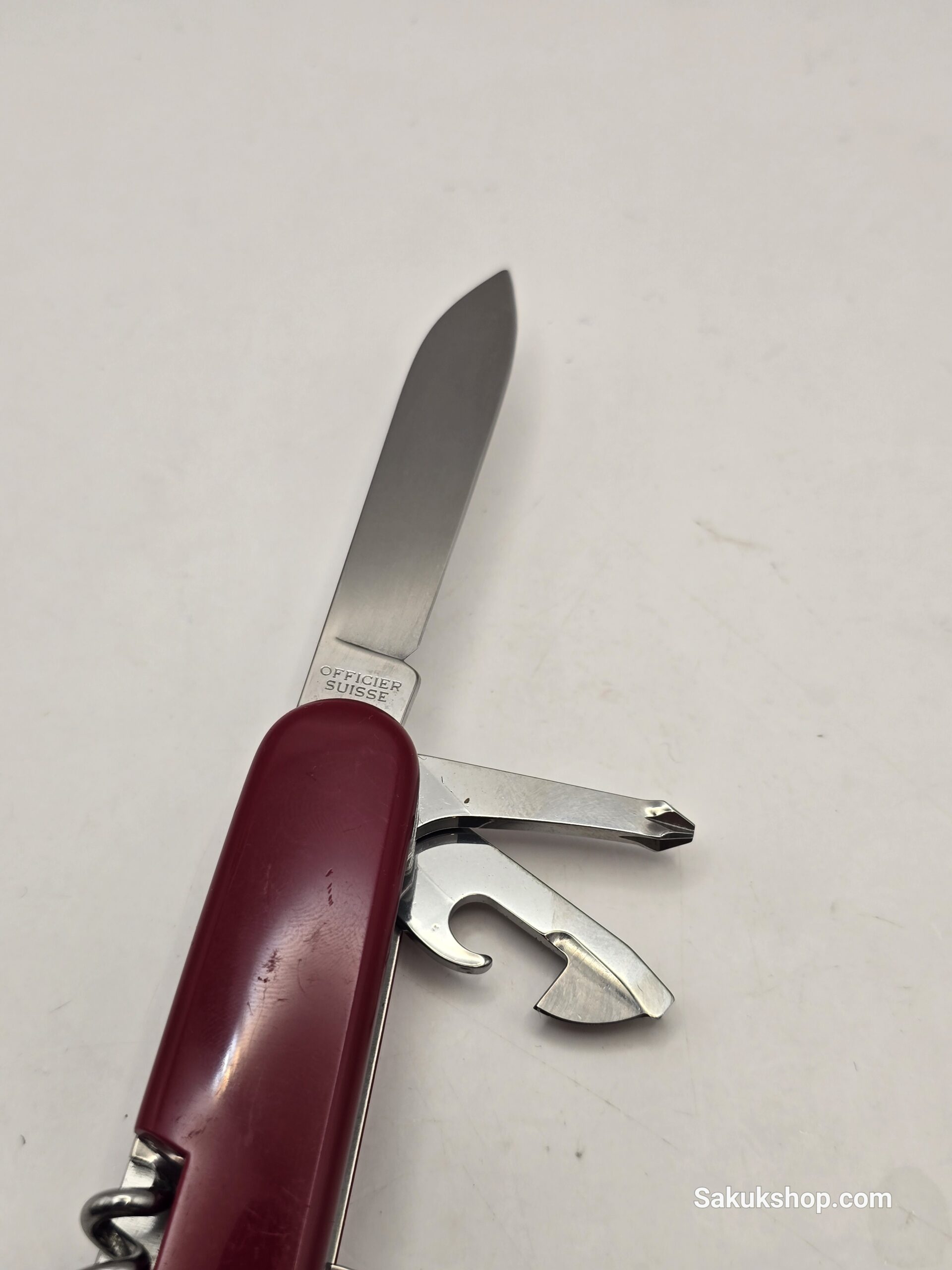 Tools: Large blade, small blade, corkscrew, reamer/punch, sewing awl, scissors, and a multi-purpose hook.